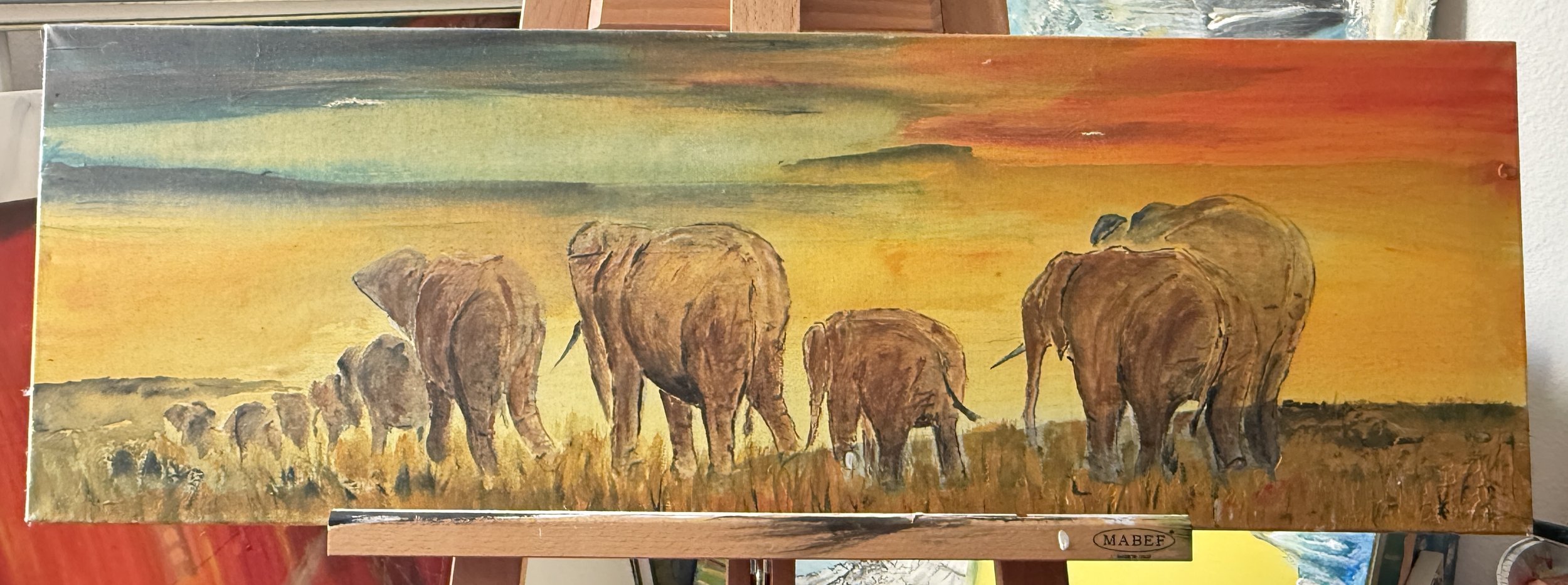 Acryl Bild auf Leinen, Elefanten Spaziergang.